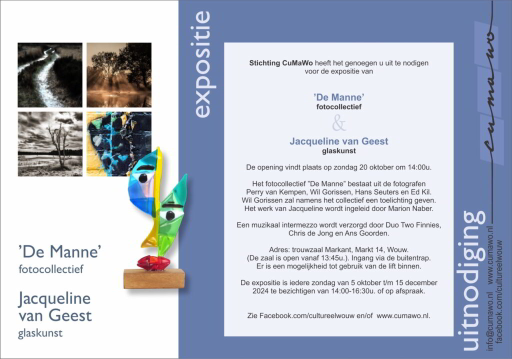 De expositie in Markant, Markt 14 in Wouw, is van 10 sept. t/m 19 nov. op zondagen geopend van 14 – 17 uur en vrij toegankelijk.